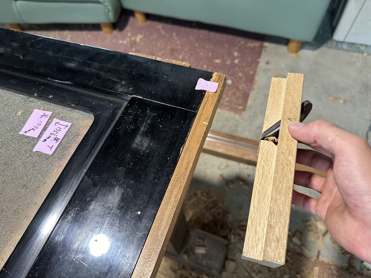 そのままだと引き戸のサイズにばらつきがあったのでカンナやノコギリで整えました。